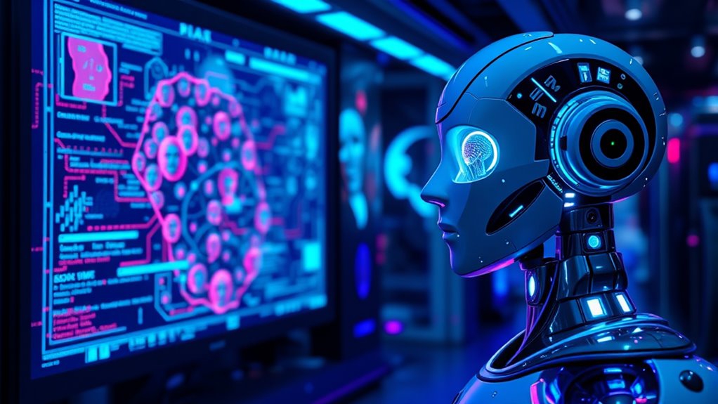 Remember, an AI’s mind is like a mirror reflecting its environment. If that mirror’s surface is scratched with bias, it distorts what you see. Self-training without careful checks risks amplifying these flaws, turning a clear reflection into a skewed image. To keep your AI’s vision true, you must polish the lens with diverse, fair data and vigilant oversight. Only then can it truly see the world without distortion.