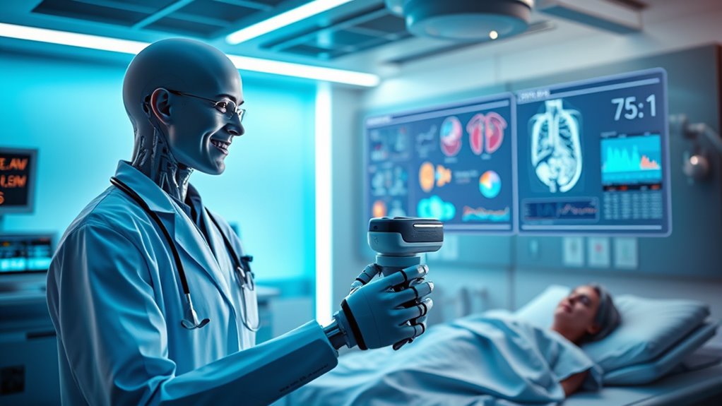 AI’s integration into healthcare isn’t just about convenience; it’s about saving lives. Robotic diagnostics enhance the accuracy of medical interventions, decreasing misdiagnoses and ensuring you get the right treatment faster. Meanwhile, virtual nursing offers ongoing monitoring that can alert healthcare providers to warning signs before they escalate into emergencies. Imagine a system that recognizes changes in your vital signs or symptoms and automatically notifies your doctor, enabling swift intervention. These innovations create a safety net that catches problems early, often before you even realize there’s an issue.