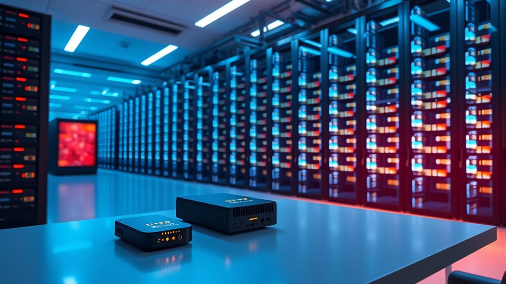 While the financial landscape varies, deploying edge AI often involves higher hardware costs due to specialized devices, whereas cloud AI typically reduces deployment expenses through scalable, shared infrastructure. You might find edge solutions more costly initially, but they can save money long-term by minimizing data transmission and latency issues. Cloud AI offers flexibility and lower upfront investments, yet ongoing operational expenses could grow with increased data processing needs.