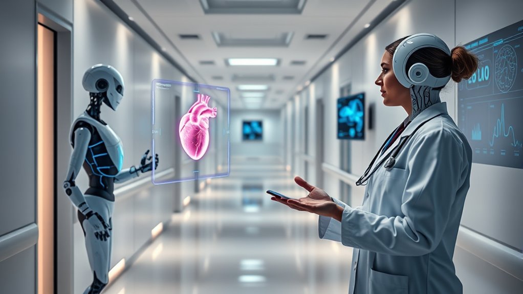 AI enhances your doctor-patient relationship by increasing telemedicine efficiency and diagnostic accuracy. You can discuss complex health issues more confidently, knowing AI supporting your doctor helps identify conditions faster and more precisely. This collaboration builds trust, as you receive quicker, data-driven insights. While AI handles data analysis, you maintain personal connection, making your experience more seamless and reassuring, ultimately strengthening the bond and improving health outcomes.