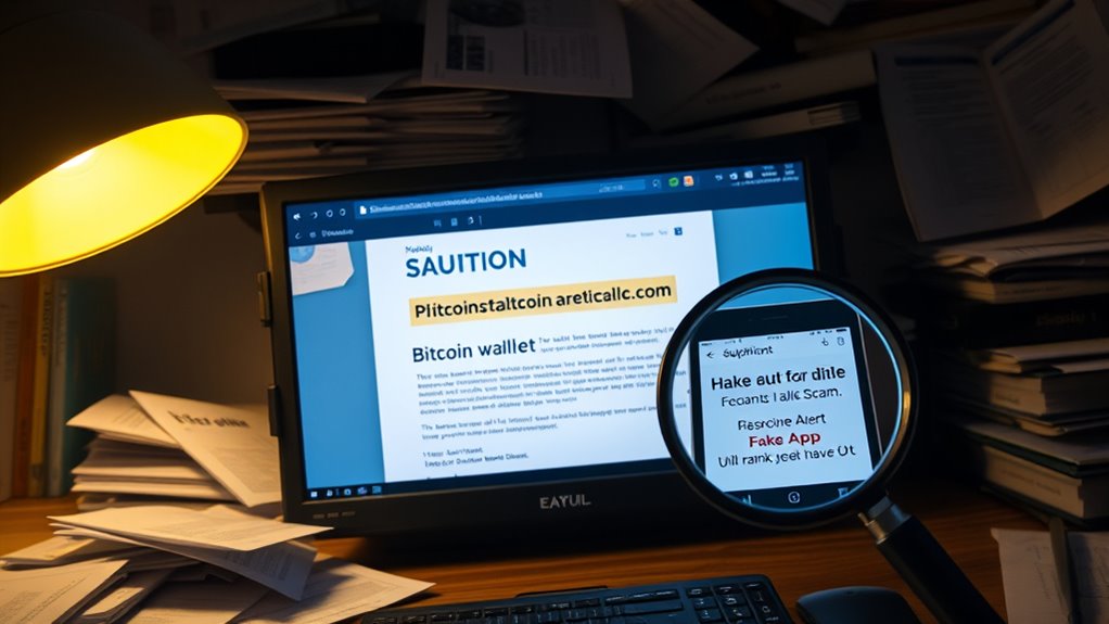 Staying vigilant is your best defense. Never rush into transactions or share your private information online. Confirm the authenticity of websites and apps before providing any sensitive data. Educate yourself regularly about new scams and tactics scammers use to stay one step ahead. By taking these precautions, you markedly reduce your chances of falling victim to cryptocurrency phishing, fake wallet apps, and other scams targeting Bitcoin users. Remember, safeguarding your assets requires constant awareness and careful verification at every step.