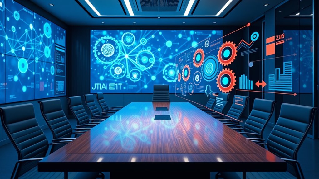 JPMorgan’s roadmap to becoming a fully AI-integrated powerhouse involves deploying AI across all business units by 2025, supported by frequent updates to their Large Language Models every 8 weeks. This will automate routine tasks, improve client interactions, and enhance operational efficiency. They plan to reduce workforce needs substantially while increasing automation and personalization. As they progress through phased deployments and develop autonomous AI systems, you’ll discover how they aim to lead the industry’s AI transformation.