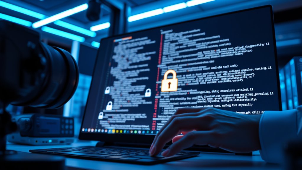 Many companies have adopted AI codes of conduct emphasizing fairness, transparency, privacy, and accountability. These guidelines aim to build trust with consumers and regulators, setting standards for responsible development. Yet, ethical issues persist—biases can reinforce discrimination, data collection can infringe on privacy, and environmental impacts from energy-intensive AI models raise sustainability concerns. You must consider how to embed morality into AI through multidisciplinary teams, including ethicists, to navigate these issues. Ultimately, programming morality in AI isn’t just a technical problem; it’s a moral imperative that requires ongoing effort, transparency, and responsible oversight.