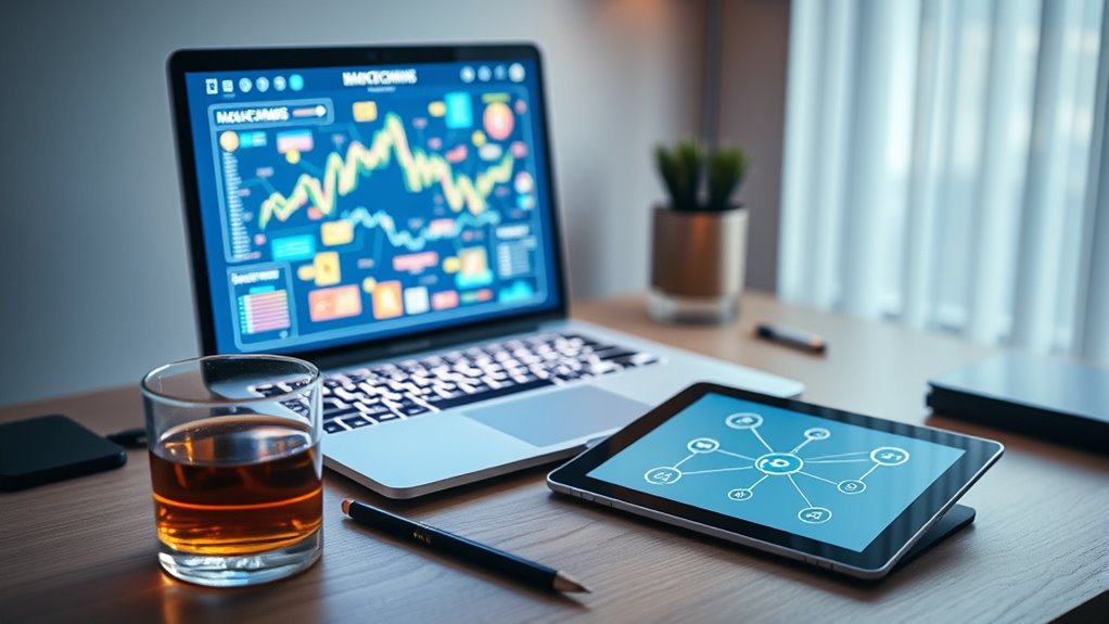 A beginner’s guide to dApps explains that decentralized applications run on blockchain networks, removing middlemen and giving you full control over your data and transactions. Unlike traditional apps, they operate through smart contracts that automate processes securely and transparently. Building and interacting with dApps involves understanding smart contract development, security best practices, and how to connect your interface through tools like web3.js. Keep exploring, and you’ll discover how these innovations transform digital interactions and trust.