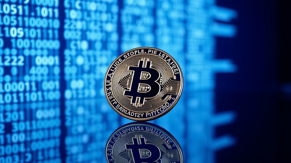 Bitcoin probably won’t replace traditional fiat currencies entirely, as central banks control monetary policy and can influence economic stability. You might see Bitcoin used alongside fiat, but it lacks the regulatory backing and flexibility of government-issued money. While it offers decentralized benefits, central banks can adjust interest rates and money supply, making fiat currencies more adaptable during economic fluctuations. So, Bitcoin’s growth won’t eliminate the need for central bank-controlled currencies.