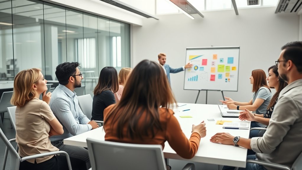 To overcome resistance to change in the workplace, focus on clear communication and active involvement. Address employees’ fears by explaining the reasons and benefits behind the change and listening to their concerns. Leaders should model adaptability and foster trust through transparency. Recognizing progress and providing training can boost morale. When you implement consistent strategies and promote a culture of continuous improvement, you’ll better manage resistance. Keep exploring these tactics to turn challenges into opportunities for growth.