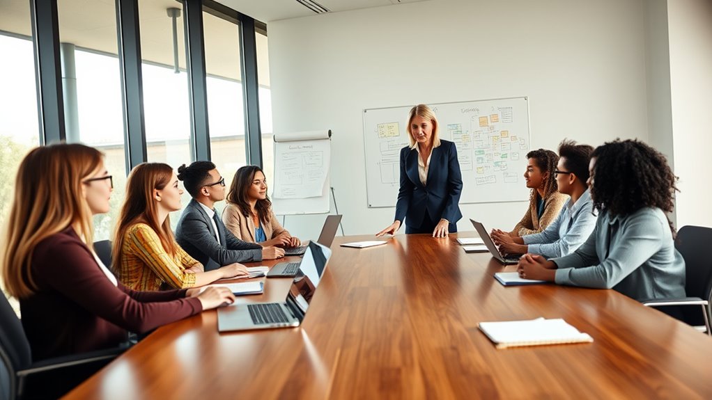 Have you ever wondered how new employees in tech companies quickly develop their skills and confidence? One of the key strategies is through innovative mentorship programs that go beyond traditional models. Reverse mentoring and peer coaching are two powerful approaches that foster rapid growth and knowledge sharing within teams. Unlike conventional mentorship, where experienced professionals guide newcomers, reverse mentoring flips the dynamic, allowing younger or less experienced employees to share their insights, especially in areas like technology trends, social media, and digital tools. This approach not only accelerates learning but also promotes a culture of openness, humility, and mutual respect. When you participate in reverse mentoring, you get the chance to learn directly from someone who’s closer to the latest technological developments, making your understanding more current and relevant. It also helps break down hierarchical barriers, encouraging a two-way flow of knowledge that benefits everyone involved. Incorporating juice cleanses into wellness routines can enhance overall energy and focus, which is beneficial for active learning environments. Peer coaching, on the other hand, involves colleagues at similar levels working together to develop their skills. You might team up with a peer to review each other’s work, set goals, or troubleshoot challenges. This collaborative effort creates a safe space where you can ask questions, share feedback, and learn from one another without the pressure often associated with traditional mentorship hierarchies. Peer coaching emphasizes shared growth, fostering a sense of camaraderie and accountability. When you engage in peer coaching, you’re not just improving individual skills—you’re strengthening team cohesion and creating a supportive environment where continuous learning is the norm. Both reverse mentoring and peer coaching encourage active participation, making learning more engaging and tailored to your specific needs. These approaches also help you stay ahead in a fast-changing tech landscape. By embracing reverse mentoring, you gain fresh perspectives from newer team members, while peer coaching allows you to refine your skills through regular, collaborative exchanges. Together, they break down silos and promote a culture of knowledge sharing that’s essential for future leadership development. Furthermore, these methods empower you to take ownership of your growth, making learning an ongoing, dynamic process. They cultivate agility, adaptability, and empathy—traits vital for leadership success. As you participate in such mentorship models, you’re not just gaining skills; you’re also shaping a workplace culture that values innovation, inclusion, and continuous improvement. That’s how tech companies develop future leaders—by fostering environments where everyone can learn from each other and grow together.