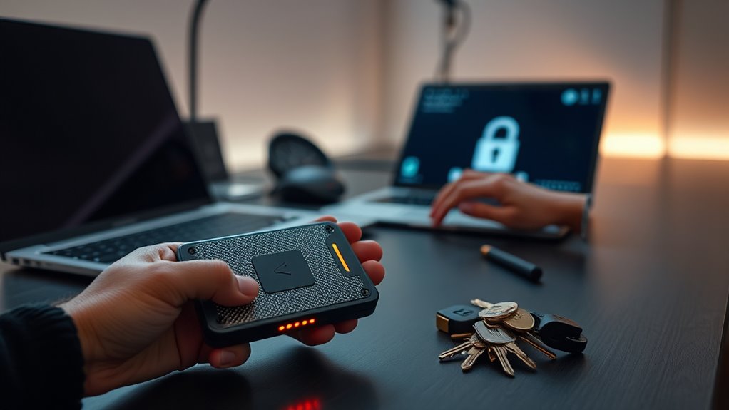 Imagine holding a vault in your hands—hardware wallets are more secure than software wallets because they offer superior hardware security, protecting your private keys from online threats. While software wallets are convenient, they’re more vulnerable to software vulnerabilities and hacking attempts. Choosing a hardware wallet minimizes risks, especially if you keep it offline, giving you peace of mind knowing your crypto assets are guarded against cyber threats.