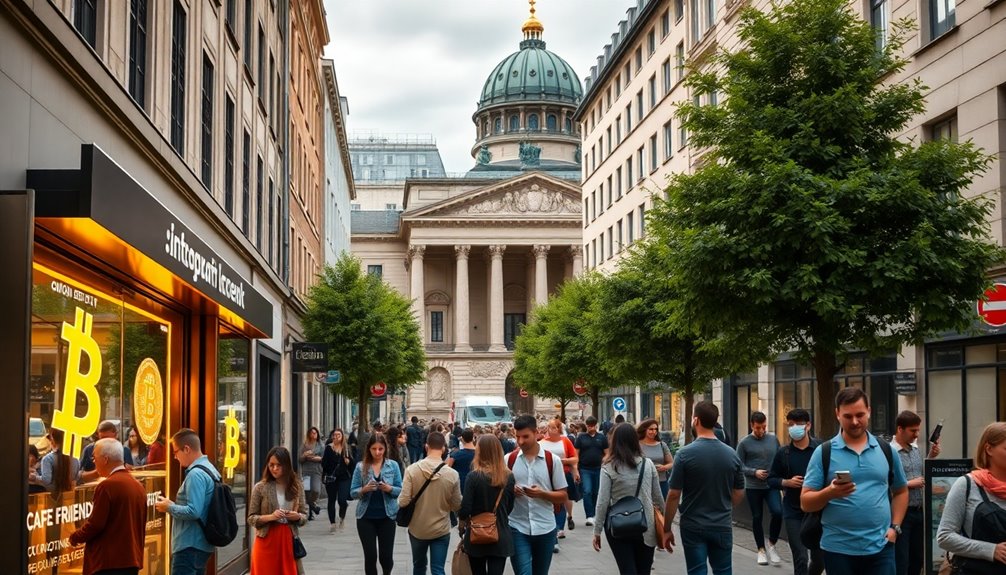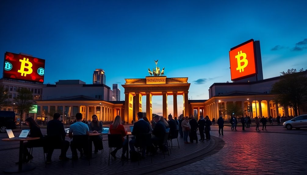 Germany's push to adopt Bitcoin is set to revolutionize the digital currency landscape. With clear regulations and efforts like the upcoming MiCA framework, the government fosters a secure environment for investors. As transaction volumes rise, Germany ranks close to the top in crypto usage, reflecting growing public interest. This adaptation increases potential for Bitcoin ETFs and broader market participation, enhancing investor confidence. Additionally, educational initiatives are addressing public misconceptions, paving the way for wider acceptance. If you explore further, you'll uncover how these trends might reshape everyday transactions and the long-term vision for a sustainable Bitcoin ecosystem.