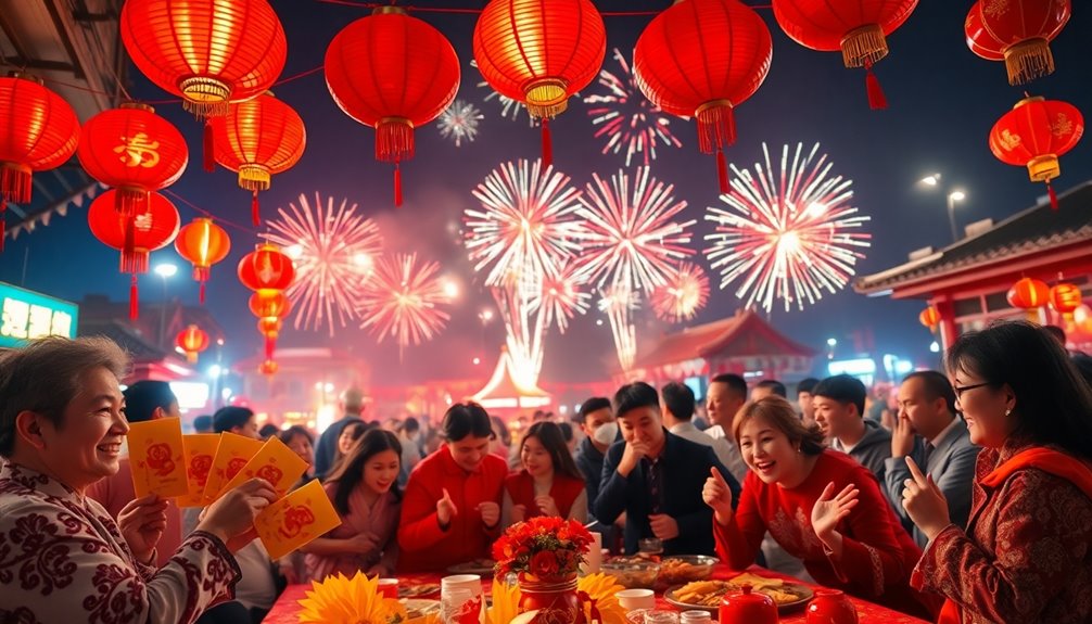 Imagine yourself participating in the traditional customs that make this holiday so special. You'll see families cleaning their homes to sweep away bad luck and decorate with red symbols that attract good fortune. The first day of the celebration is reserved for family reunions, emphasizing unity and harmony. You might exchange red envelopes filled with money, a gesture symbolizing good luck and prosperity. Estimated three billion people travel during the holiday, reflecting the significance of familial connections.