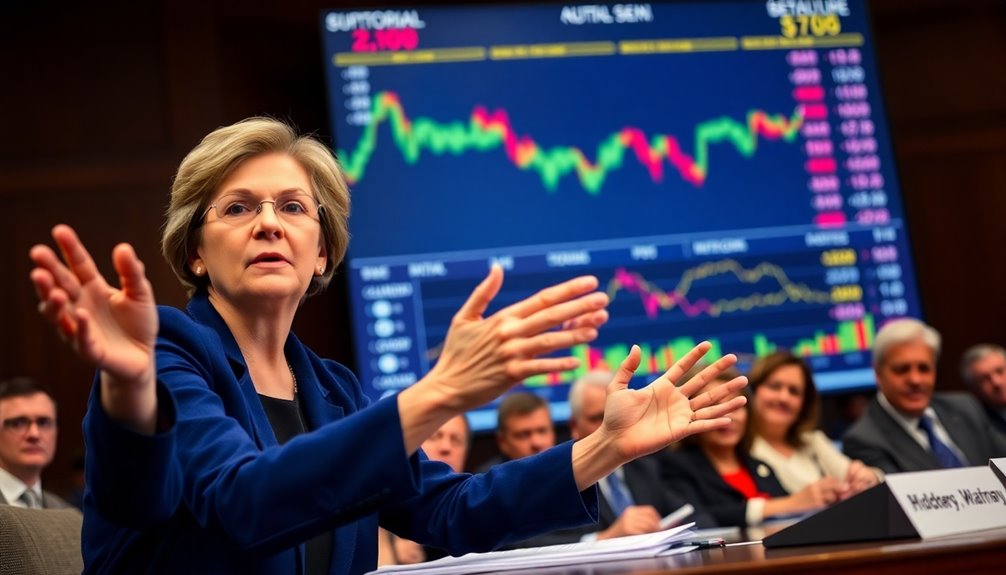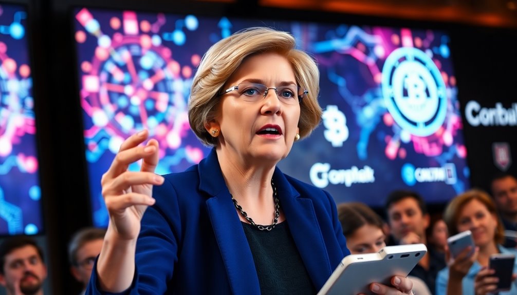 Senator Elizabeth Warren's urging for stricter cryptocurrency regulations is gaining traction. She's pushing for measures that enhance oversight, like extending the Bank Secrecy Act and implementing Know-Your-Customer protocols. These steps aim to combat issues like money laundering and ensure accountability within the crypto ecosystem. The recent surge in Bitcoin's value has amplified the call for clearer regulatory frameworks. With bipartisan support for potential legislation, the landscape for digital currencies is evolving. If you're curious about how these developments could impact the crypto market, there's much more unfolding in this dynamic space.