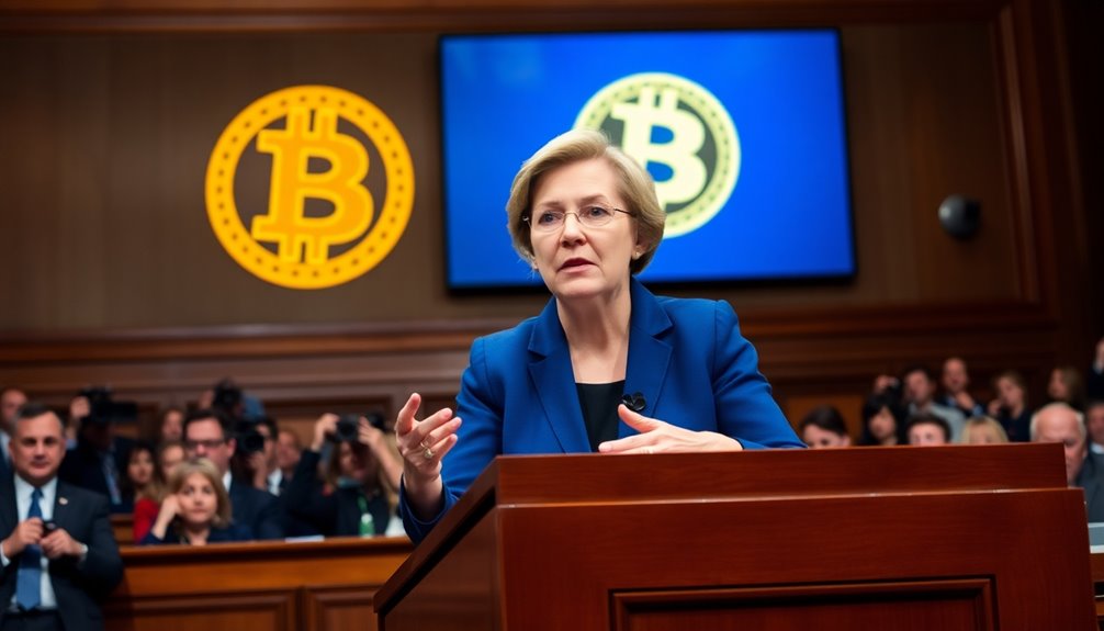 Senator Elizabeth Warren's urging for stricter cryptocurrency regulations is gaining traction. She's pushing for measures that enhance oversight, like extending the Bank Secrecy Act and implementing Know-Your-Customer protocols. These steps aim to combat issues like money laundering and ensure accountability within the crypto ecosystem. The recent surge in Bitcoin's value has amplified the call for clearer regulatory frameworks. With bipartisan support for potential legislation, the landscape for digital currencies is evolving. If you're curious about how these developments could impact the crypto market, there's much more unfolding in this dynamic space.