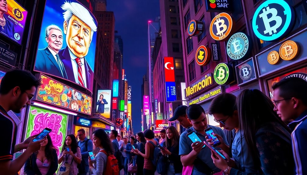 You'll notice the volatility in prices, driven by social media hype and community engagement, continues to attract risk-tolerant investors. Community engagement plays a crucial role in the success of these coins, helping to build dedicated followings that can influence price movements.