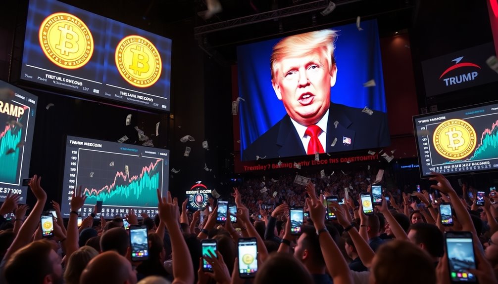 This viral attention, particularly from his supporters, propelled $TRUMP's valuation into the spotlight, showcasing the power of celebrity-driven momentum in the memecoin space. As excitement surged, the market cap skyrocketed to $9 billion, with Solana's price also climbing. However, the volatility and speculative nature of such tokens raise concerns about their long-term sustainability. While the buzz is palpable, you should approach with caution, considering the potential risks involved in this unpredictable crypto landscape. Analysts suggest a possible hack could undermine Trump's pro-crypto image, highlighting the need for investor vigilance.