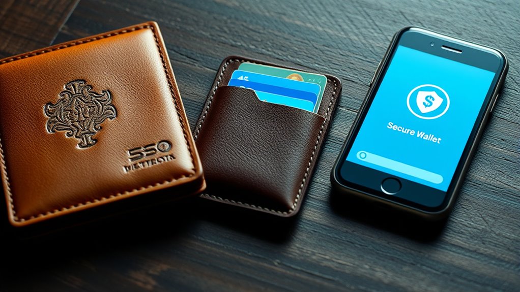 The evolution of wallets has gone from simple leather pouches to advanced digital tools. Today, you use smartphones equipped with NFC, biometrics, and secure encryption to manage your money effortlessly. Digital wallets offer instant transfers, added security, and seamless integration with banking and cryptocurrencies. This shift reflects not just technology, but a move toward more convenient, secure, and personalized financial experiences. If you’re curious about how wallets keep transforming, there’s much more to discover ahead.