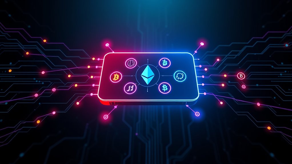 Interoperability allows you to manage multiple blockchain assets within a single wallet, simplifying your crypto experience. By using cross chain bridges and compatible token standards, you can seamlessly transfer assets between networks like Ethereum, Binance Smart Chain, and Solana without switching wallets or platforms. This unified approach increases your control, saves time, and reduces mistakes. Keep exploring how this technology works, and you’ll discover even more ways to optimize your digital asset management.