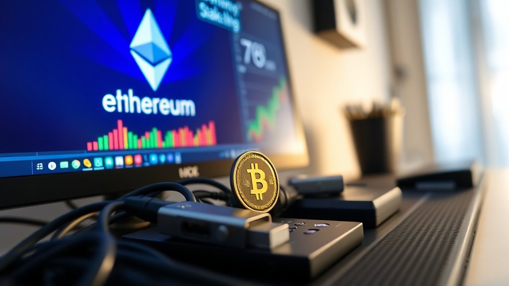 As you stake, your primary incentive is earning staking rewards, which are distributed proportionally based on your staked amount and validator uptime. These rewards are paid out periodically and can markedly increase your ETH holdings over time. Keep in mind that rewards fluctuate depending on the overall network performance and the total amount staked. To maximize your staking rewards, you should aim for high uptime and secure validator operation. Operating your validator reliably means minimizing downtime and avoiding penalties that could reduce your rewards or even result in slashing. Monitoring your validator’s performance regularly, keeping software updated, and ensuring your setup is secure are key steps in maintaining validator security and optimizing your earnings.