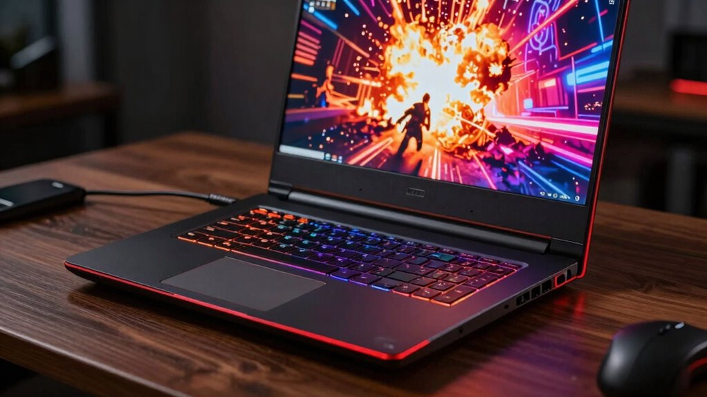 When considering a gaming laptop, remember that striking looks can sometimes mask hidden compromises. While a sleek design might catch your eye, it’s wise to dig deeper into specs, cooling, and build quality to guarantee it truly meets your gaming needs. Don’t let aesthetics alone steer you—what’s beneath the surface often holds the real promise. With a keen eye, you can find a machine that not only impresses visually but also delivers the performance you deserve.