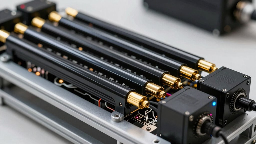 Yes, risers can cause performance issues in mining rigs if they’re faulty or incompatible, leading to unstable wireless connectivity and reduced hash rates. Poor-quality risers may create bottlenecks or signal interference, affecting the rig’s efficiency. To avoid these problems, choose reliable risers that match your setup, ensuring your mining rig maintains peak performance and aesthetic customization without interruptions.