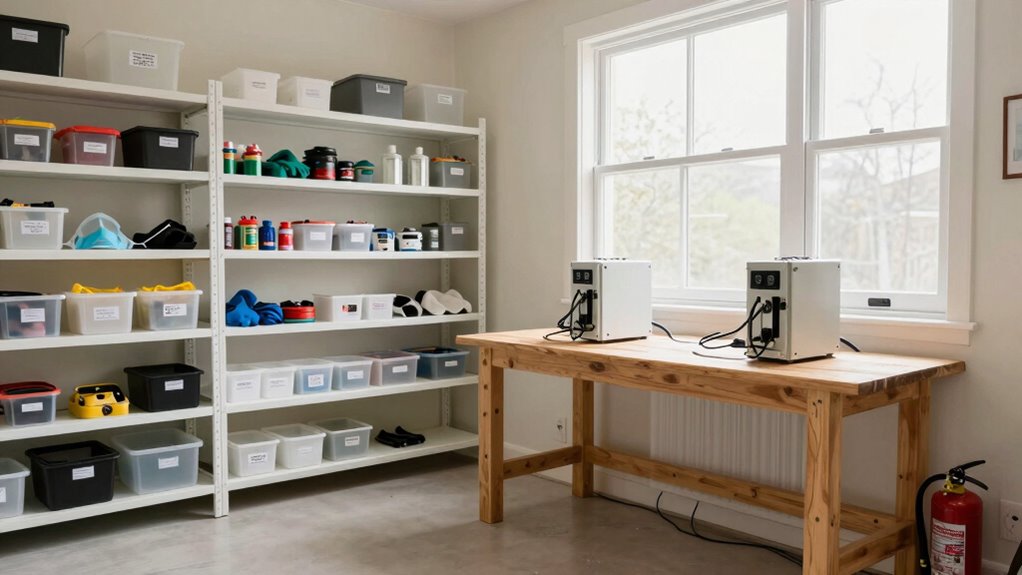 You should inspect your safety gear at least once a month to guarantee it’s in good condition, replacing any worn or damaged items promptly. Regularly review emergency procedures with your team to keep everyone prepared. This routine helps maintain a safe environment, minimizes risks, and guarantees your safety equipment functions correctly in emergencies. Staying proactive with safety gear inspections and emergency drills keeps your mining room safer and compliant.