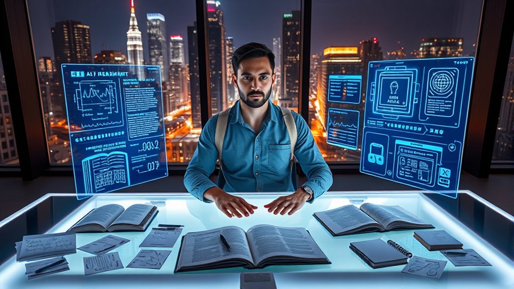 As you embrace AI-driven self-education, remember it’s a powerful tool that expands your horizons. Yet, this freedom comes with responsibility—balancing curiosity with ethical awareness. Like a double-edged sword, AI can unseal endless knowledge but also risks bias and privacy concerns. By staying conscious of its influence, you can harness AI’s potential to grow smarter and more responsible, turning the vast digital universe into a truly personal, ethical learning journey.