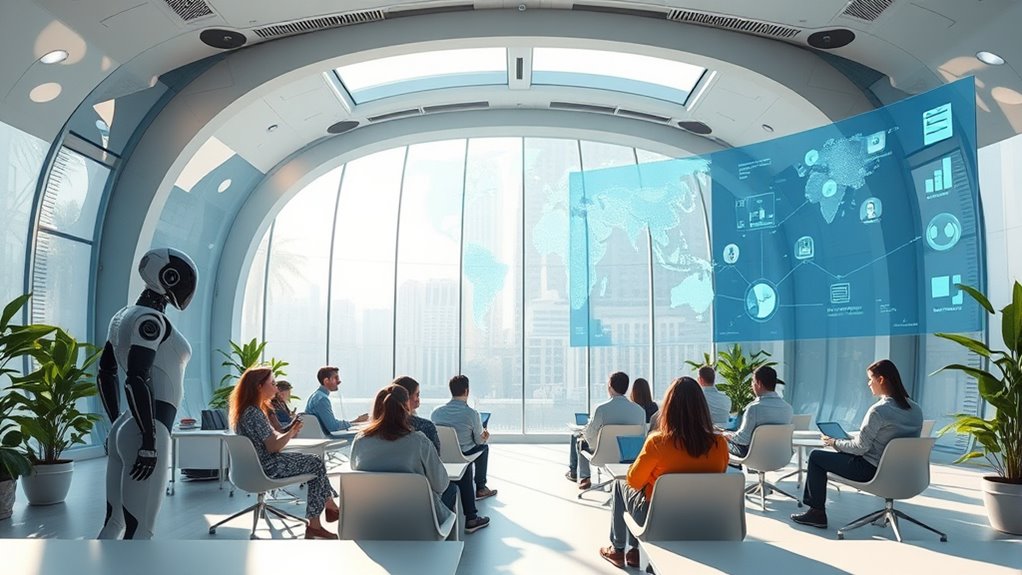 AI will transform your teaching roles by automating routine tasks, allowing you to focus on personalized learning and student engagement. You’ll need to understand AI ethics to guarantee fair and responsible use of technology. Your responsibilities will shift towards guiding critical thinking and emotional support, while leveraging AI tools to tailor lessons to individual needs. Embracing these changes helps you prepare students for a future where AI and human skills coexist seamlessly.