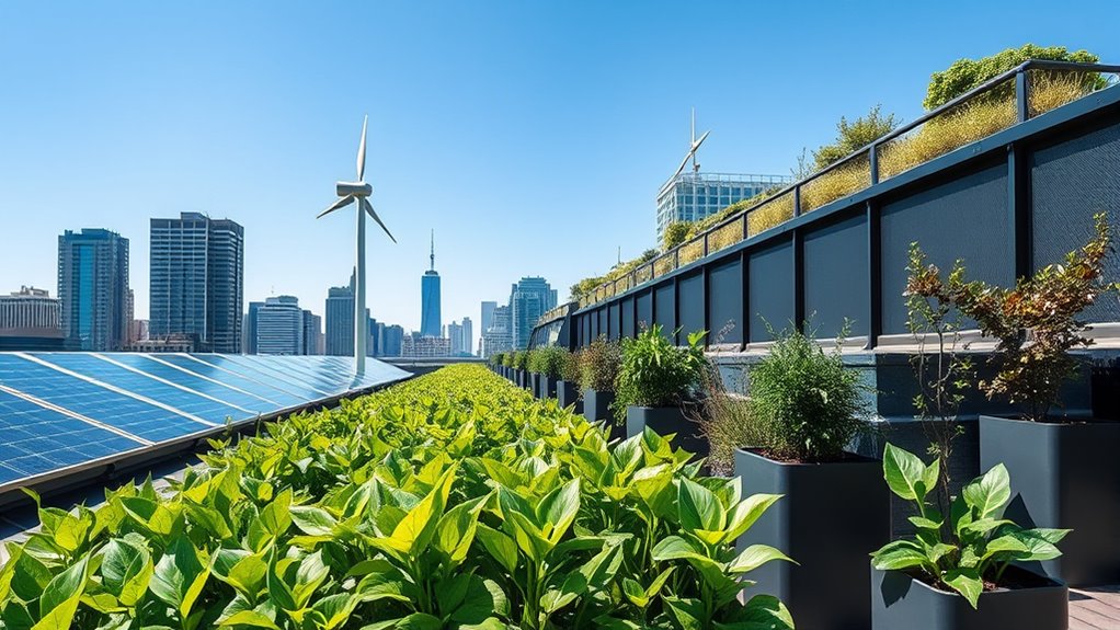 Green tech helps you protect the environment by reducing pollution, cutting greenhouse gases, and promoting sustainable growth. It uses innovations like renewable energy sources, eco-friendly manufacturing, and smart technology to lower your carbon footprint and save energy costs. These solutions create jobs and support eco-conscious choices. By adopting green tech, you contribute to a healthier planet. Keep exploring how these advancements can make a difference, and you’ll discover even more ways to get involved.