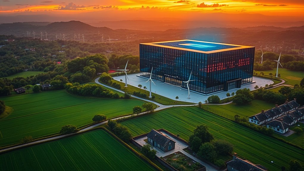 AI data centers unleash a storm of environmental concerns that you can’t ignore. They gobble up massive amounts of energy, often from fossil fuels, fueling climate change. Water cooling demands drain local resources, especially in water-stressed areas. Plus, emissions spike, polluting air and water, while regional grids strain under the surge. You’re witnessing a delicate balancing act—technology’s progress threatening the very environment we depend on.