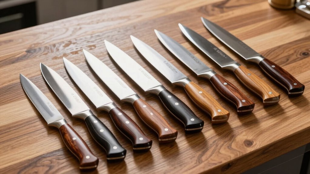 Ever wondered how the weight and balance of an 8-inch chef knife affect your kitchen performance? A well-balanced knife, typically weighing between 6 to 8 ounces, helps reduce hand fatigue during extended use. When the weight is properly distributed, it feels neither too heavy nor too light, giving you better control. The center of gravity near the bolster or handle enhances stability, making slicing, chopping, and dicing smoother and more precise. Proper balance also improves safety, as it offers better control and minimizes slipping risks. A knife with the right weight and balance allows for effortless maneuvering and reduces strain, making your tasks easier and more comfortable. Choosing a well-balanced knife is key to optimizing your kitchen efficiency and comfort.