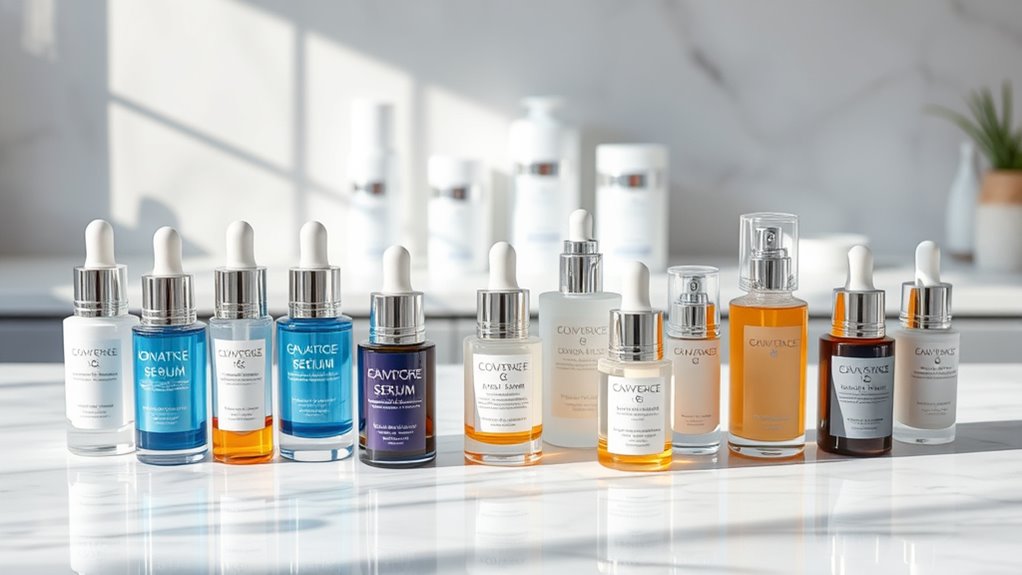 Selecting the right anti-aging serum starts with understanding your skin type and choosing formulas tailored to its specific needs. If you have oily skin, look for oil-free or lightweight, mattifying options that won’t clog pores. For dry skin, opt for hydrating formulas containing ingredients like hyaluronic acid to boost moisture. Sensitive skin benefits from serums with gentle, non-irritating ingredients, and it’s wise to test a small amount first to avoid reactions. Always check product labels to ensure suitability for your skin type—some are specifically marked for sensitive, oily, dry, or combination skin. Additionally, reviewing customer feedback and clinical data helps confirm that the serum performs well without causing irritation or breakouts. Matching your skin type with the right serum improves effectiveness and minimizes adverse effects.