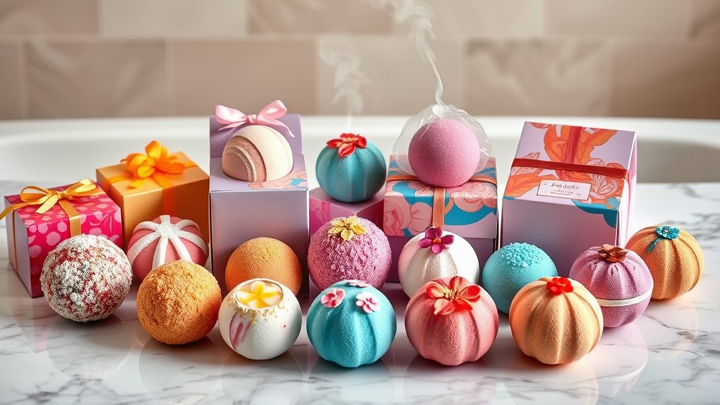 Yes, there are plenty of bath bomb gift sets that include aromatherapy or essential oil blends. I love choosing sets with calming lavender or invigorating eucalyptus, which turn my bath into a true spa experience. These blends not only make the bath more relaxing but also offer aromatherapy benefits. When shopping, look for sets labeled with essential oils or aromatherapy, so you know you’re getting that soothing, fragrant touch.