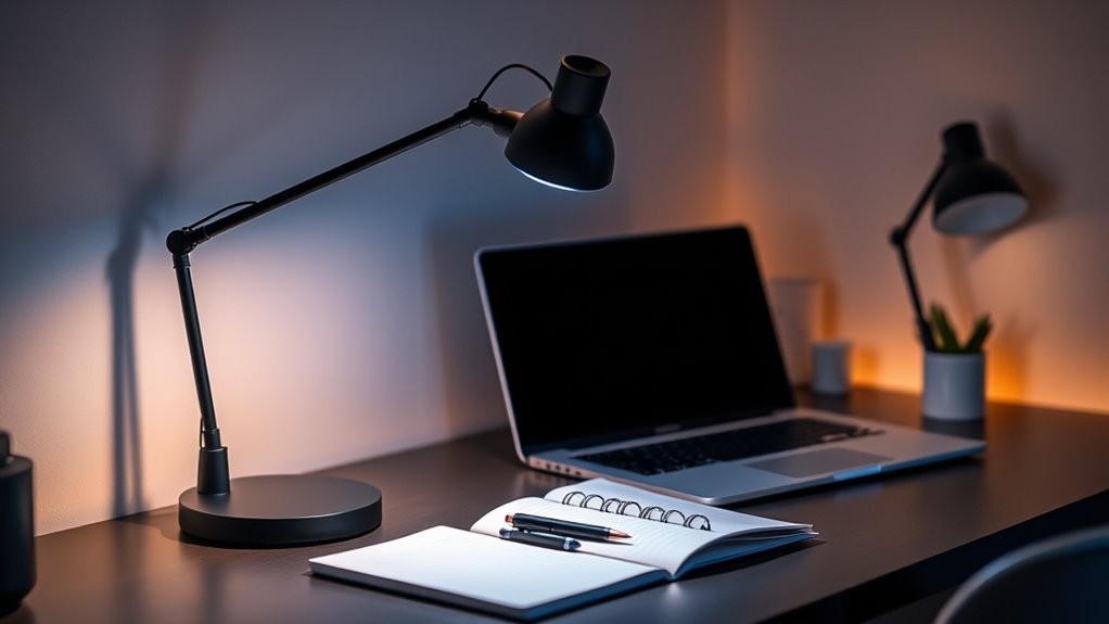Think of choosing the right blue light blocking desk lamp as planting a seed in your workspace garden. When nurtured with the right light, it blossoms into clearer vision, sharper focus, and healthier eyes. Just like tending a delicate plant, selecting the perfect lamp helps your productivity flourish without the risk of strain. So, invest in your environment—your eyes and mind will thank you for years to come.
