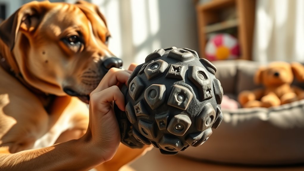 Think of choosing the right dog toy like planting a sturdy tree in a storm. The stronger the roots, the better it withstands the winds of your pup’s chewing. With these durable options, you’ll build a resilient bond, ensuring your dog stays happy and engaged. Remember, a well-chosen toy isn’t just a distraction — it’s a fortress that protects their teeth and your peace of mind. Keep your pup’s happiness rooted in quality!