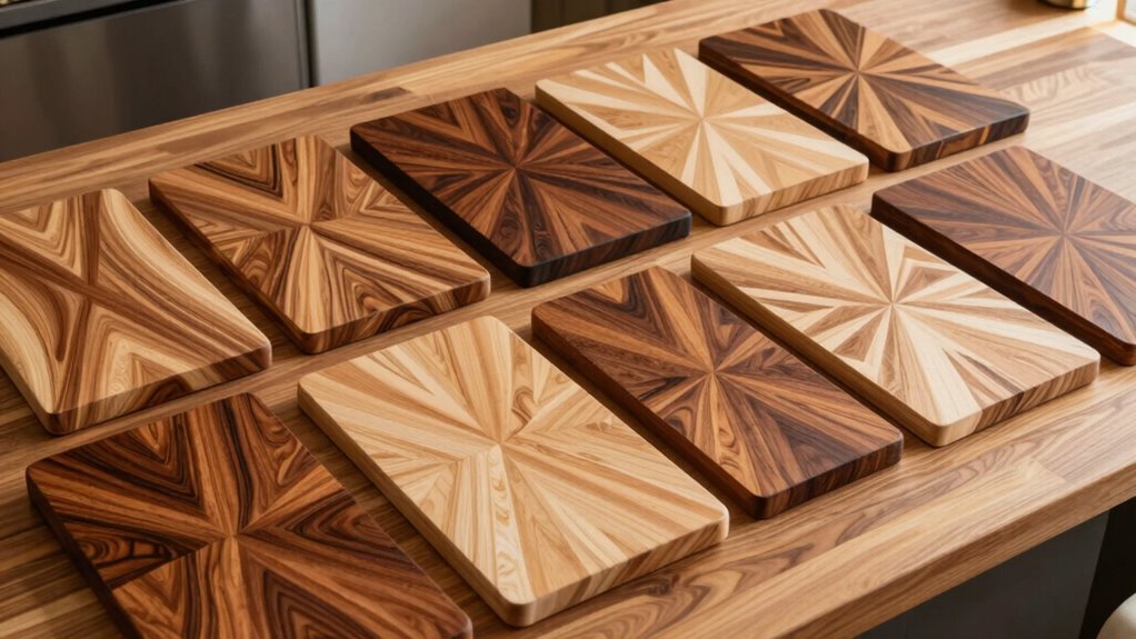 Choosing an end grain cutting board with the right handle and stability features can make a significant difference in how safely and comfortably you work. Handles, whether built-in side grips or integrated, make lifting and moving the board easier, especially during prep or serving. Reversible boards with handles on both sides add versatility and simplify flipping without lifting the entire surface. Proper handle design—ergonomic shape and strategic placement—reduces strain and ensures a secure grip, even when the board is loaded. Stability features like rubber feet or anti-slip pads are essential for keeping the board steady, preventing slips, and enhancing safety. Ultimately, a well-designed handle combined with reliable stability features helps you work more efficiently and reduces the risk of accidents.