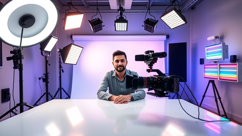 Choosing the right lighting kit truly transforms your videos, making them more professional and engaging. I’ve found that investing in quality gear, like softboxes or ring lights, can substantially boost your content’s appeal. Interestingly, studies show that good lighting not only improves video quality but also enhances viewer retention. So, don’t overlook this essential aspect—lighting isn’t just an accessory; it’s the secret to making your videos shine bright in 2025 and beyond.