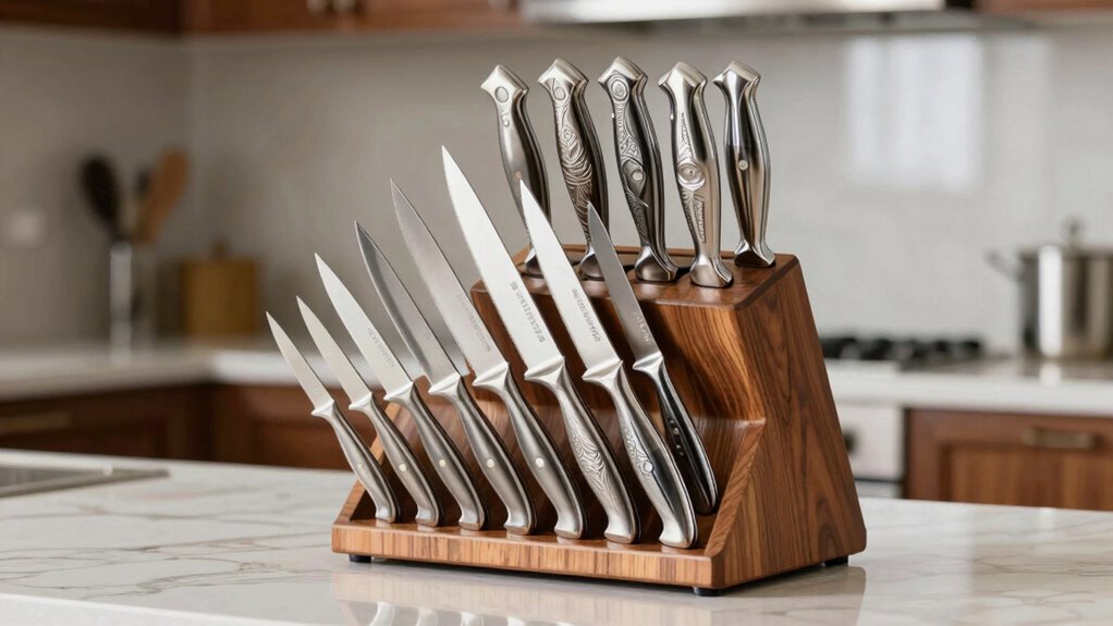 - Include sets with long warranties, stylish designs, and added tools like honing rods and shears for overall value and longevity.