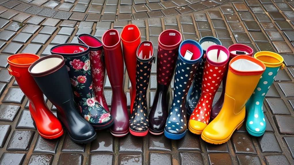 Choosing rain boots that match your style involves considering both their appearance and how they fit into your wardrobe. Rain boots come in various styles, from ankle to tall designs, so you can select what suits your look and needs. Patterns and colors like floral, animal print, or bright hues can add personality and coordinate with casual or outdoor outfits. Sleek, minimalist designs are versatile for everyday wear, while decorative details such as bows or embellishments make a statement. The length and shape of the boots influence their overall vibe—shorter boots tend to be playful and casual, while taller ones feel more sophisticated. Picking a style that reflects your personal taste and suits your outdoor activities ensures your rain boots are both functional and fashionable.