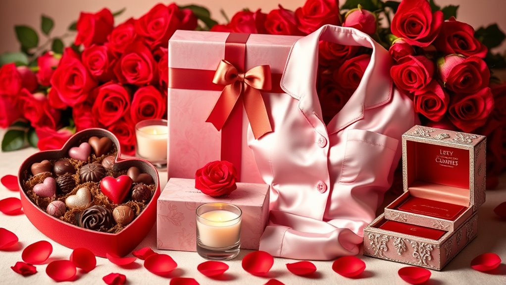 When selecting a Valentine’s Day gift set, I always think about the recipient’s preferences and the occasion’s tone to guarantee it feels just right. I also consider the quality of the items and whether there’s a chance to add a personal touch through customization. Finally, presentation matters, so I pay attention to how the gift is packaged to make it feel special from the moment they see it.