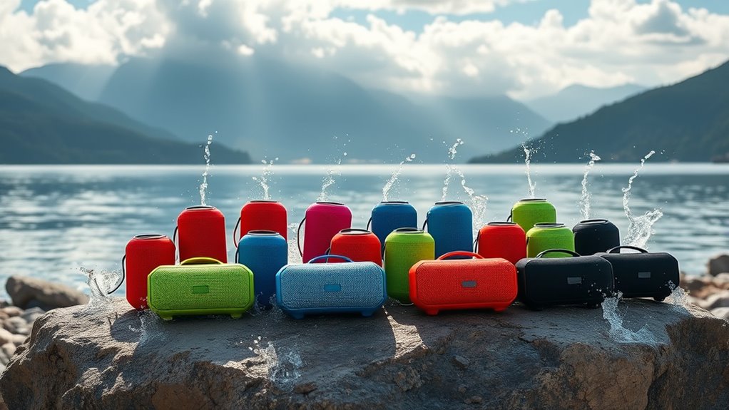 Waterproof ratings like IPX7 really boost a speaker’s durability by allowing it to withstand immersion in water up to a meter deep for 30 minutes. I’ve found that with an IPX7 rating, I don’t worry about splashes, rain, or accidental drops in water. It’s reassuring knowing my speaker can handle unexpected splashes or even brief submersion without damage, making it perfect for outdoor adventures or poolside use.