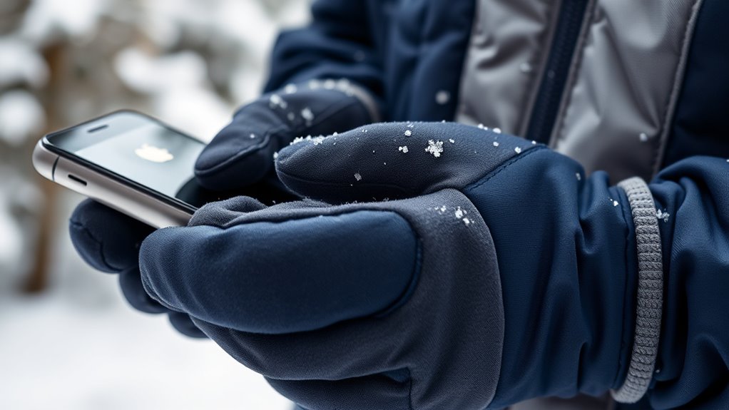 Think of winter gloves as tiny electrical bridges, allowing your touch to connect despite the cold. They maintain touchscreen sensitivity in extreme temperatures by using conductive materials like NFC threads or metallic fibers woven into the fingertips. These components mimic the electrical properties of your skin, ensuring your device registers your commands even when frost bites your fingers. With the right gloves, your screen stays responsive, no matter how icy the weather gets.
